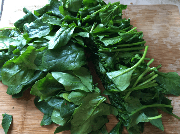 所需食材:菠菜 100克;雞蛋 3個;大蒜 2瓣;薑 1小塊;鹽 適量;雞精 適量;食用油 適量