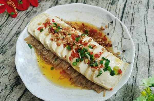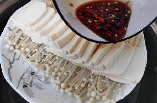 豆腐金針菇主要用豆腐和金針菇兩種食材,制作的時候搭配辣椒澆上,味道多上一些辛辣,卻又不失兩者優點,吃起來十分爽口解饞。