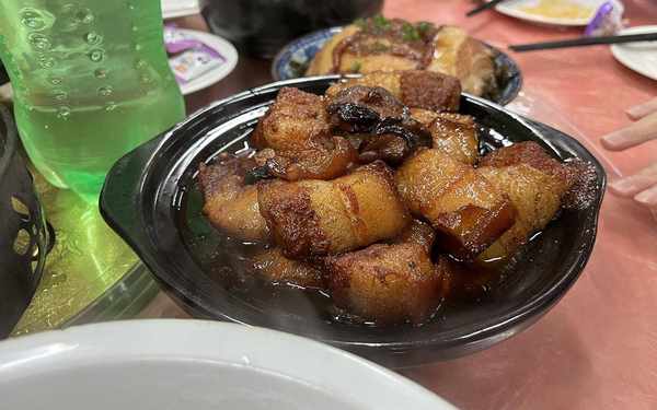基本上隻要稍微花點錢的菜,酒店就用小碗來做,就比如這個紅燒肉,這是現做的,燉的也比較的軟爛,口感還是不錯的,隻不過一桌子,給這麼點也實在是“小氣”,豬肉價格現在本身也不是很高,所以這個菜也並沒有名貴多少。