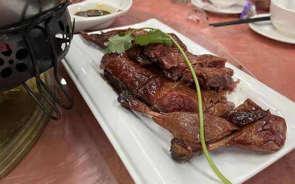 宴席上,上這個菜確實有些掉面子瞭,而且這個醬鴨,特別的小,就好像是街邊烤爐上的那種鴨子,十幾塊錢就可以買一隻,但是它這個明顯比較少,估計還不到一隻,這個菜算葷菜,有些掉檔次瞭。