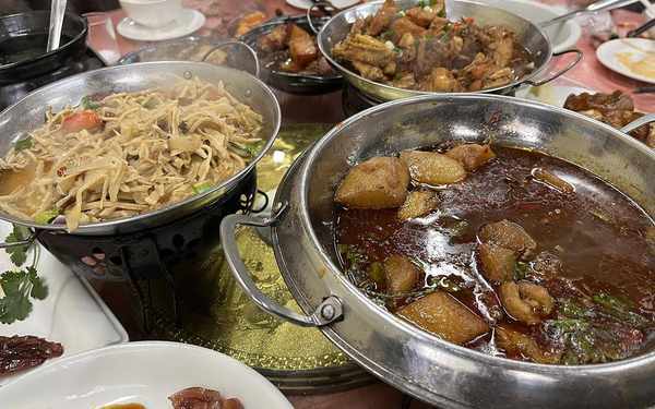還有的雞那也一定得有,隻不過這個雞,直接采用紅燒的方式,吃上一口你發現,這個雞就是那種速凍雞,沒有啥鮮味,就是調料的味道,而且雞肉相當的松散,一點都不緊致,說明這個雞就是那種廉價的凍雞做的,成本也是相當的低廉的。