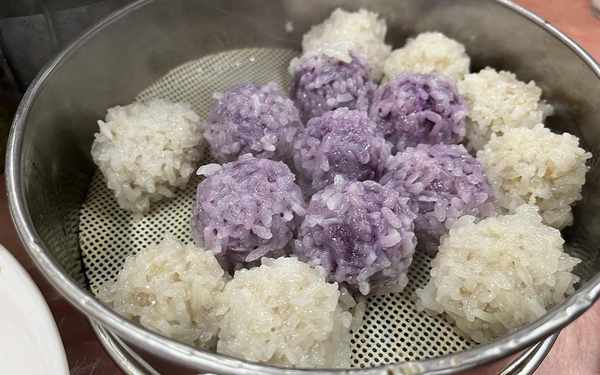 剛開始以前這個丸子都是肉做的,但是吃在嘴裡的時候,才發現壓根就沒有肉味,而且大部分是用紫蘇來做的,紫蘇外面裹上一層糯米,然後把它蒸熟透,這樣就是一道宴客菜瞭,充饑還是很不錯的,至於味道,一點都不好吃。