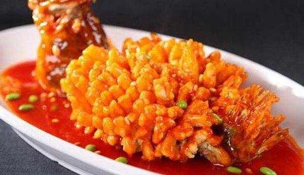 咱們就先說說松鼠桂魚吧,松鼠桂魚說江南名吃。好不誇張的說,松鼠桂魚就是在肉上雕花,這道菜非常考驗廚師的刀功,需要花費很長時間,而且非常好吃,可以說非常精致瞭。