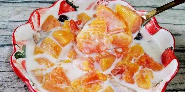2、再加入500毫升純牛奶,一把枸杞攪拌一下,蓋上蓋子再燉五分鐘左右,木瓜燉牛奶就好瞭。