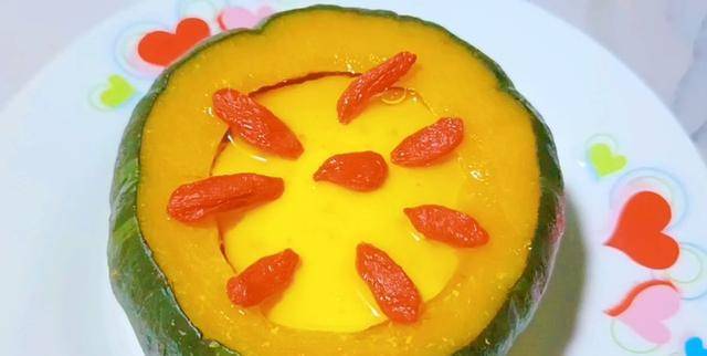 2、把蛋液過濾一下,倒進南瓜裡,最後放入幾個枸杞,南瓜一定不要蓋蓋子,隻需要蓋上鍋蓋即可,繼續蒸15分鐘,南瓜蒸蛋就好瞭。