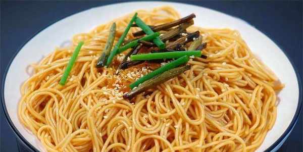 2、水開下入面條煮熟,撈出放入碗裡,然後淋上炸好的蔥油,放上蔥花酥,再撒點芝麻就可以開吃瞭。