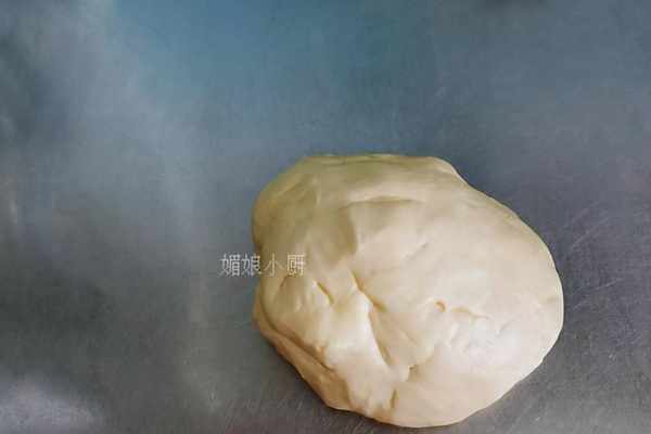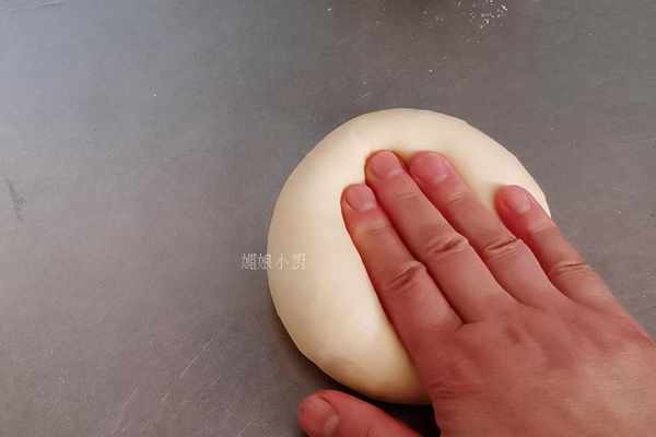 7.取小面團,四指並攏拍打面團,對它進行排氣,拍打至面團內部沒有氣泡