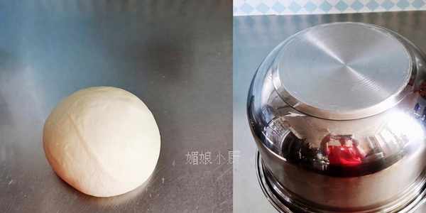 4.此時面團很軟但不光滑,取出面團進行摔打,手抓起面團往案板上摔打,一直到面團光滑細膩,再將面團滾圓,蓋上大盆,靜置發酵約1小時(室溫約25度)