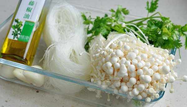 材料:金針菇350克,綠豆粉絲1小紮,香菜3顆。
