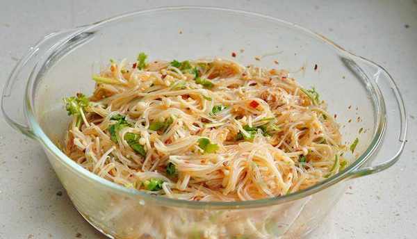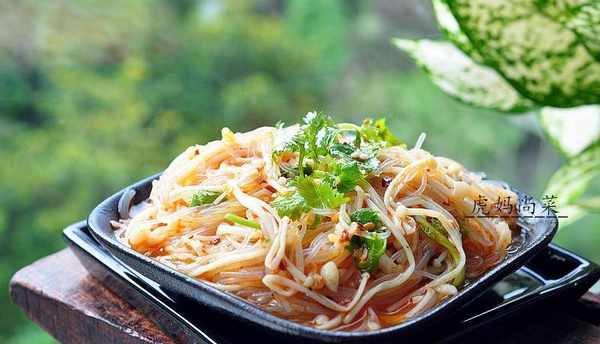 做法:1.鍋中水燒開後,放入粉絲,煮一分鐘,至不硬瞭即可撈出。