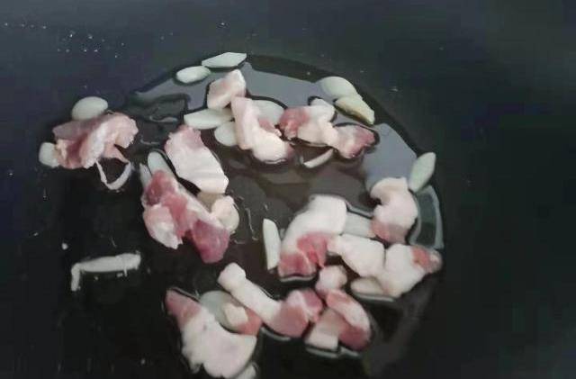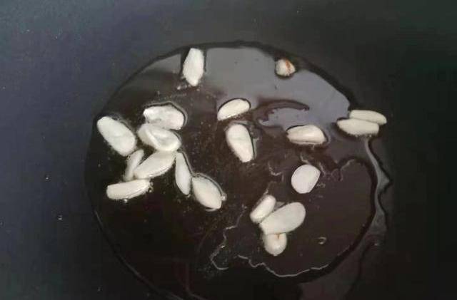 2、取出我們炒菜用的鍋,刷洗幹凈後倒上食用油,轉成大火加熱油鍋。當我們鍋中的油微微冒煙時,油溫合適,就可以將切好的大蒜放入鍋中,不斷地煸炒出蒜香即可。