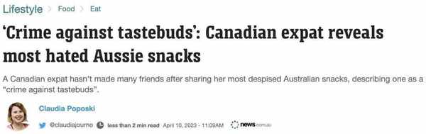 在澳洲生活瞭7年的加拿大女子Ioana在社交媒體上分享瞭自己永遠不會再吃的澳洲零食。