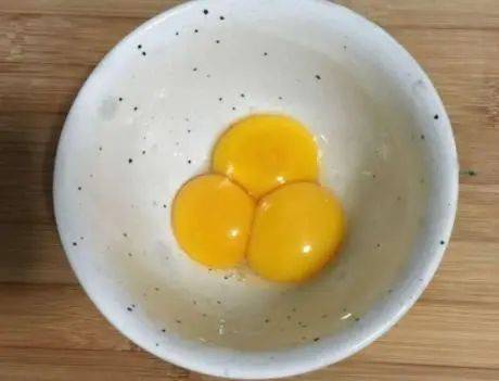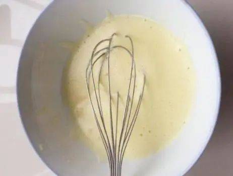 步驟2,取加熱後牛奶液,白砂糖充分溶化即可、雞蛋三個,把它的蛋白從蛋黃中分離出來,分離後的蛋黃先用手打雞蛋器攪打均勻;