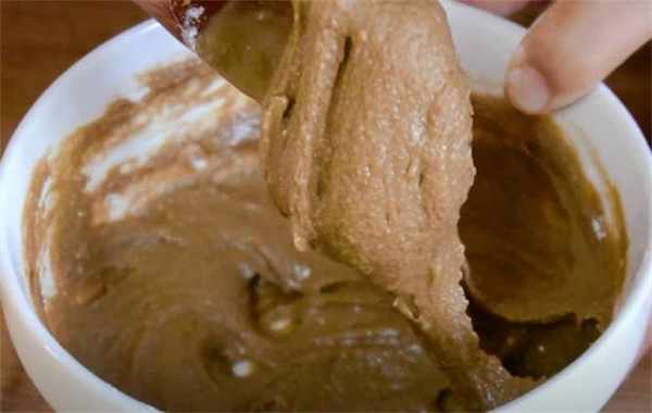2.現在我們調個醬,這是100g的芝麻醬,放上10g的香油,2g鹽,把這些材料攪勻瞭,把材料攪勻後少量多次的添加面粉,我大概加瞭25g的面粉,咱們一直攪拌成這樣的糊狀就行瞭。