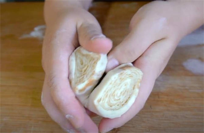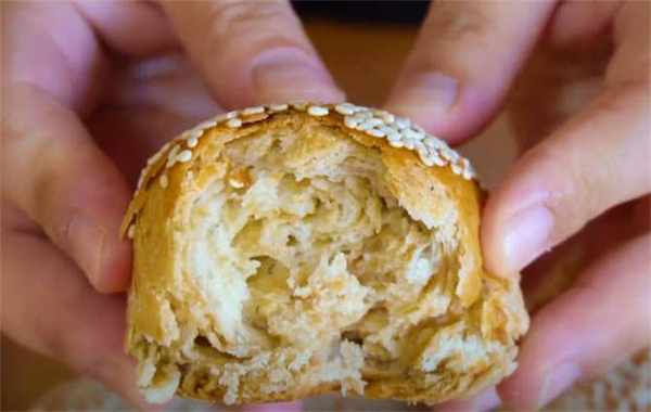 12.這個燒餅外面這一層是脆脆的,裡面是非常的松軟,喜歡就自己在傢試試吧。