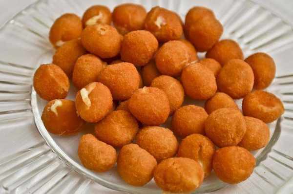 4.將油加熱至160-180℃,將羊奶球或者羊奶條用筷子或勺子放入油中炸至金黃色。