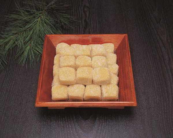 3.將煮好的羊奶倒入模具中,用鏟子抹平,放入冰箱冷藏兩個小時左右,最後將它搓成小圓或切成大小均勻的小塊。