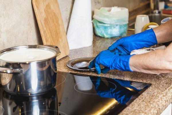 2.將混合好的羊奶倒入鍋中,開中小火,不停地攪拌,直到它變得粘稠。