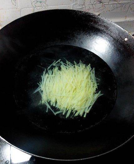 鍋裡燒水,開鍋後把土豆絲倒下去焯個2,3分鐘。