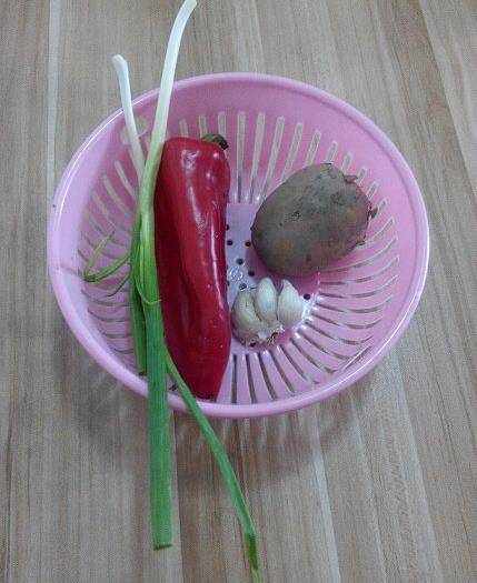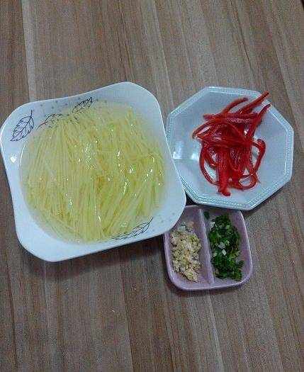 夏天快到瞭,吃稀飯的時候比較多,一般我都是提前煮好稀飯晾著,備點爽口的小涼菜,買點現成的饅頭,吃的人涼快,做的人也不用在廚房裡汗流浹背的。其中,常做的就是這道涼拌土豆絲。需要用刀的材料有:土豆,甜椒,小蔥,大蒜;調味的有:鹽,雞精,糖,香醋,花椒油,香油。