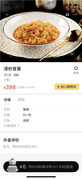 “我們是3個人吃飯,點多瞭怕浪費,點少瞭又怕不夠吃。”周先生表示,看到每個菜的標註分量為1克,他十分驚訝,於是又逐一點開每份菜品進行核實,確定並非是自己看花瞭眼。以售價398元的招牌清炒膏黃為例,菜品詳情顯示為:“主料蟹黃,分量約1克,口味咸鮮。”