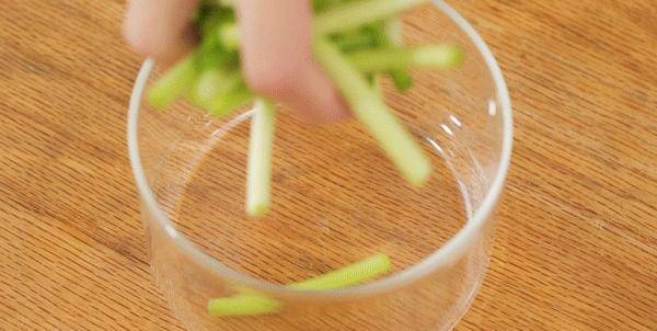 做法很簡單,蒜薹切成段,用鹽出水分,再調個泡菜汁。
