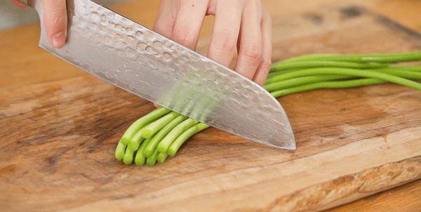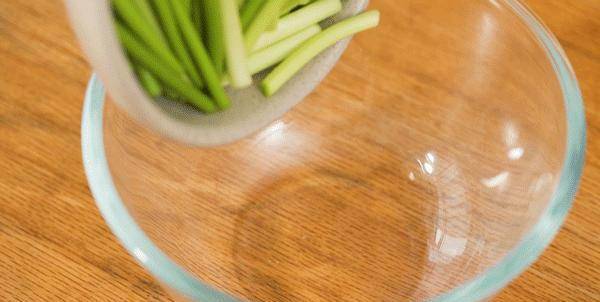2.蒜薹用2小勺鹽醃漬半小時,用涼白開洗掉多餘的鹽分,瀝幹水分備用