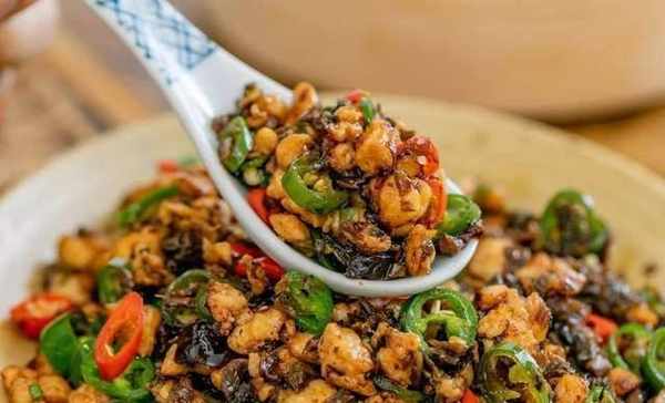類似的菜,咱們內地也挺多款,拆解一下,萬變不離其宗:蔬菜粒+肉末+發酵食材。