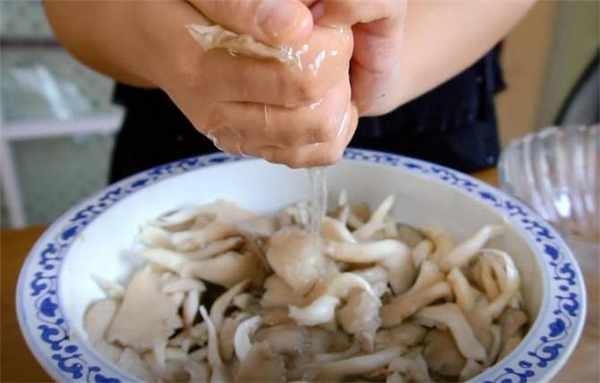 1.在超市買瞭點蘑菇,咱們今天炸蘑菇吃,看這次買的蘑菇,看著挺新鮮,就是這個瓣有點小瞭,咱們把它洗一洗,把蘑菇撕成小條,摘瞭這滿滿的一大盆,放上兩勺鹽醃一下,抓勻之後醃上5分鐘就行瞭。