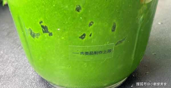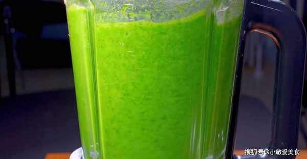 3、放入清水裡,洗上兩遍,用手擠出一些汁水,能去除苦味和澀味。洗好後盡量擠幹水分,放入絞肉機裡,倒入250克的清水,蓋上蓋子打成細膩的艾草泥。倒入大碗裡。