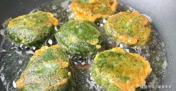 6、油熱放入艾草團,用中小火慢慢的煎,煎至一面微黃後,翻面再煎另一面,煎至兩面金黃熟透,就可以出鍋啦,香煎艾草團就做好瞭。