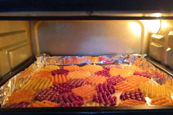 【所需食材】:三色番薯(土豆,黃地瓜,紫薯),孜然粉適量,辣椒粉適量,蜂蜜一勺,食用油適量