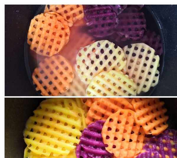超級好吃的三色薯片,自己在傢做,簡單方便,控油少鹽更健康