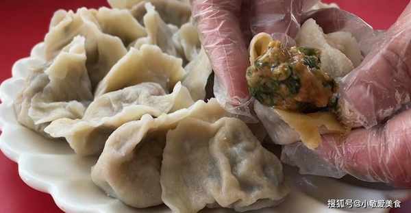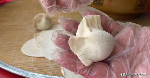 5、準備適量餃子皮,放入餡料,用自己喜歡的方式包成餃子。