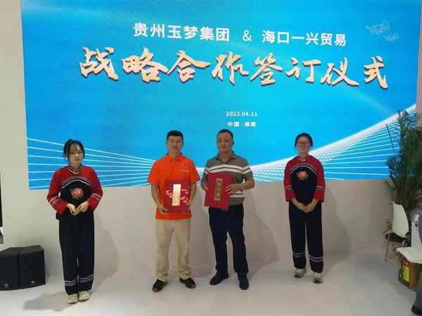 4月11日,在第三屆中國國際消費品博覽會上,貴州玉夢食品(集團)有限公司與海口一興商貿有限公司正式簽署戰略合作協議。