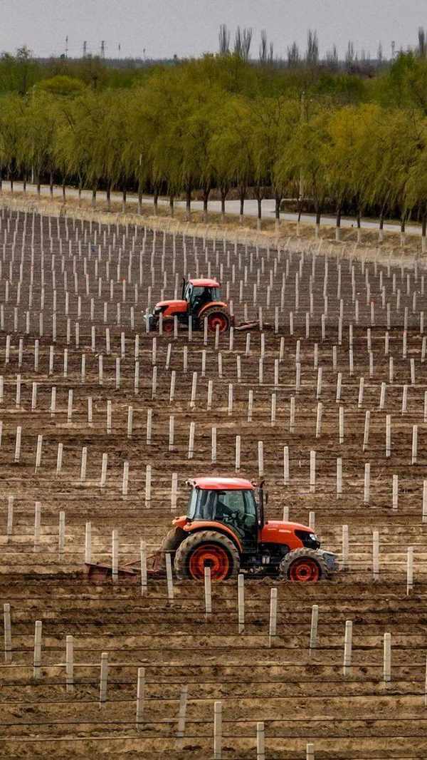 即使近些年,葡萄園裡的機械化作業已經不斷迭代,也隻能幫助每壟葡萄的翻地從三遍減到兩遍,剩下的任務,依然要靠楊奶奶們一鍬一鍬挖出來。