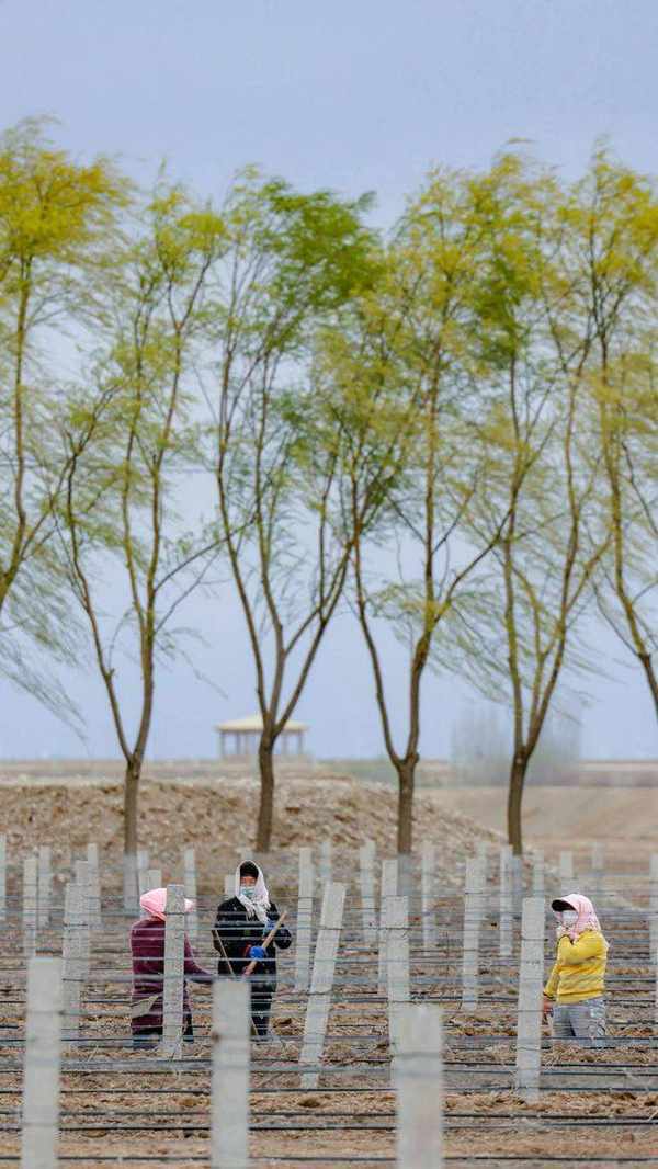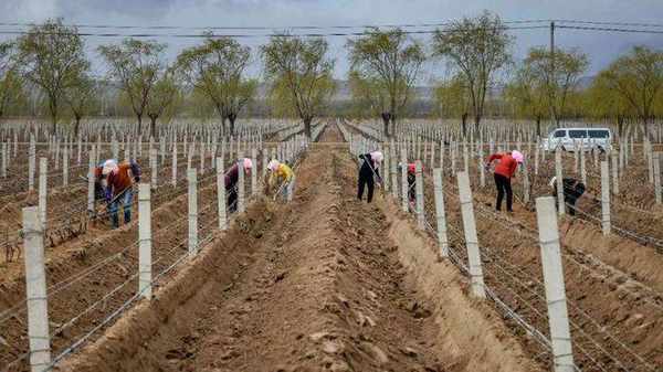 「葡萄樹每年春季展藤出土的半個月時間需要57萬人次勞動力;出土後的葡萄樹還需要經過上架和抹芽等工序,也需要人工完成。」