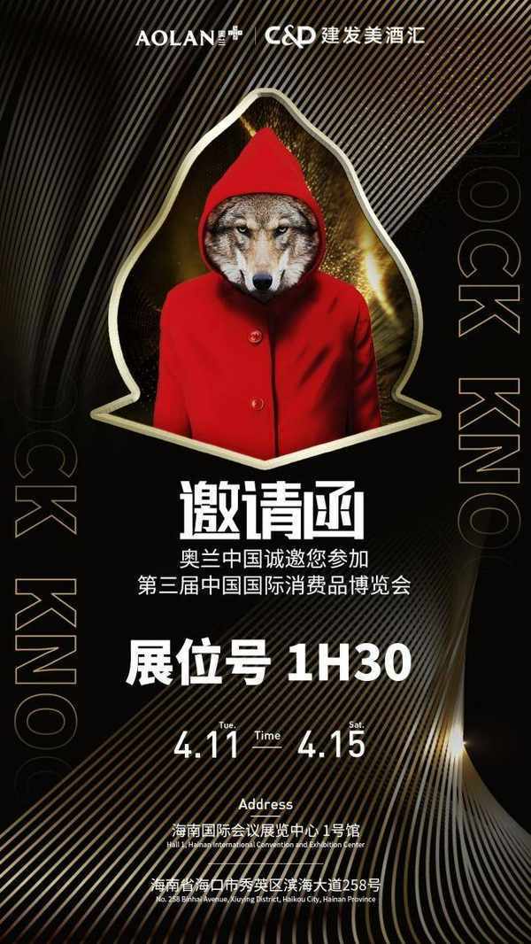 芳菲四月,相約熱浪海口。第三屆消博會將於4月11日至15日在海口舉辦,本次奧蘭中國將三度攜手建發美酒匯參展消博會。位於海南國際會展中心的1號館1H30展位,別具一格的奧蘭小紅帽K系列葡萄美酒將飄香現場,為參展嘉賓煥新味蕾體驗。同時,奧蘭中國還將聯動線上線下,全方位帶領消費者體驗沉浸式氛圍逛展。