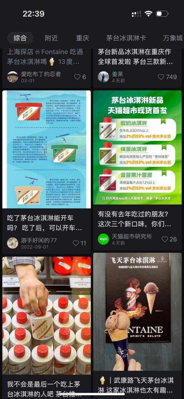 小紅書上各種關於茅臺冰淇淋的種草內容(圖片來源於網絡)