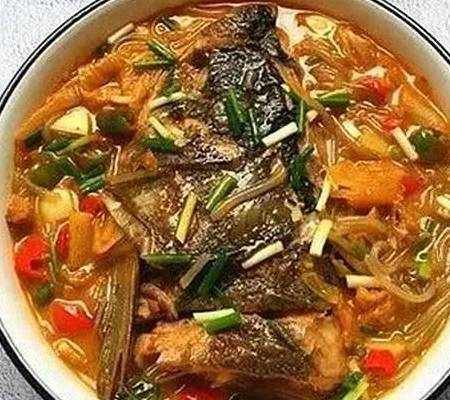 主料胖頭魚900克辣白菜100克紅薯粉條100克青紅椒2個薑15克