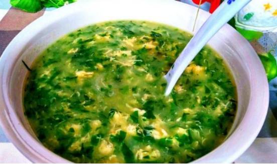鍋中放入清水,水開之後,把打散的雞蛋和用水調的面糊倒裡面,要快速攪勻,不要粘鍋,再放入切碎的萵筍葉,加點鹽攪拌均勻即可。