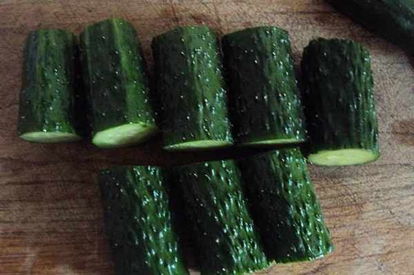 20分鐘後把黃瓜清洗幹凈,然後先切成3厘米左右的段