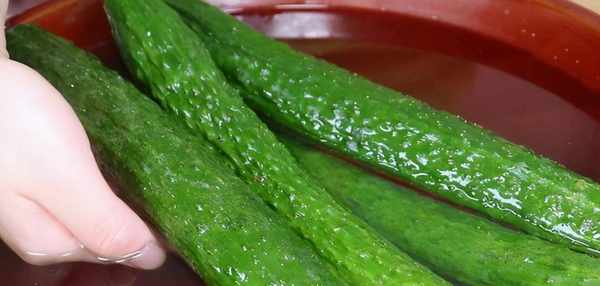 為瞭預防農藥殘留對人體的傷害,黃瓜應先在鹽水中泡15~20分鐘再洗凈生食。用鹽水泡黃瓜時切勿掐頭去根,要保持黃瓜的完整,以免營養素在泡的過程中從切面流失。