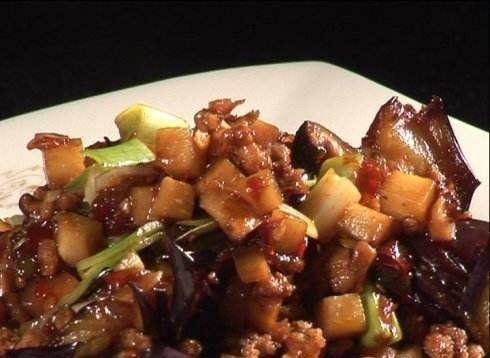 1、茄盤切塊;2、青、紅辣椒切成片;3、小蔥、薑片、蒜切碎;4、先將茄子用熱油炸一下,然後用去表面油的開水泡一下,裝盤待用;5、鍋中加入少許香油,放入花椒炒熟,撈出放入幹辣椒;6、油熱後,倒入切好的青椒,將切好的辣椒炒熟,加入蔥薑蒜、醬油、香油、精鹽、雞精、糖和醋。拌勻,倒在茄子上。