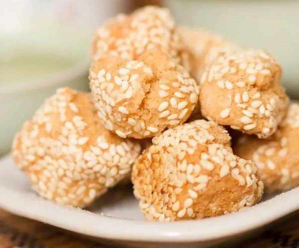 材料:低筋面粉、泡打粉、白糖、白芝麻、雞蛋、食用油
