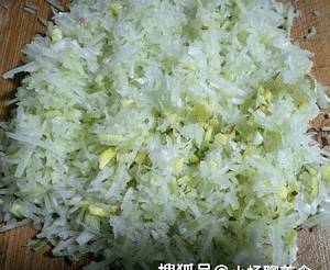 把洋蔥、薑、蘿卜按照上面的步驟用刀剁碎。