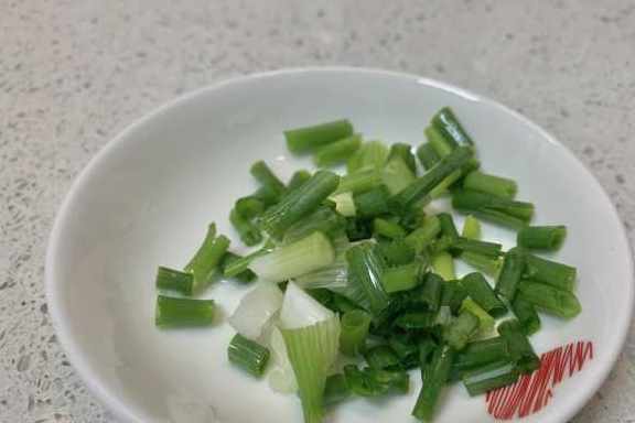 第二步:生葱用清水沖洗乾淨後,再用刀子切成蔥花放進小碟備用。