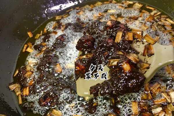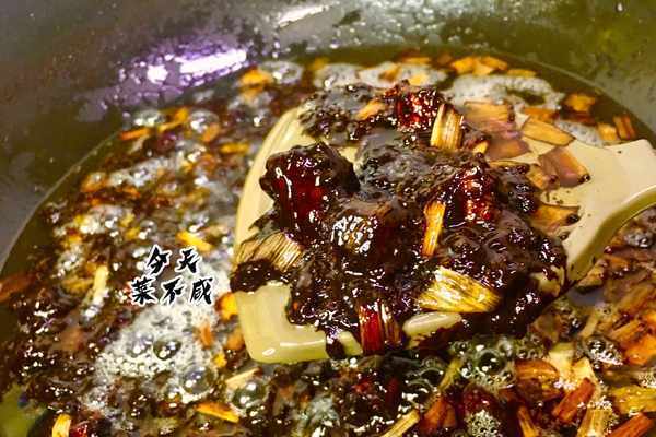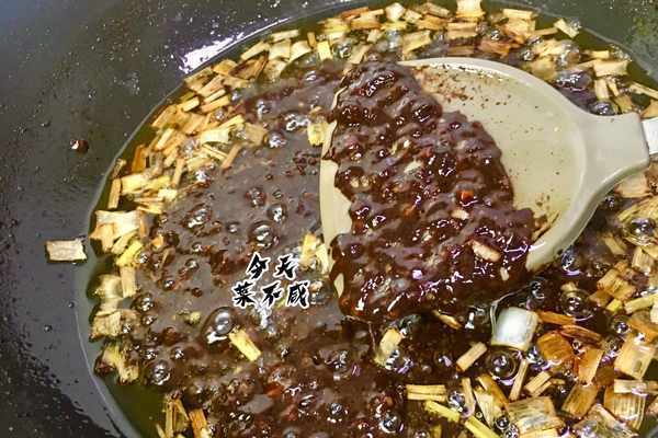 三、幹黃醬不要直接下鍋炒,一定要提前加水調開,小火慢炸把水分炸幹,切記中途不能加水。簡單說就是把五花肉丁炸香,把醬炸香,把蔥花炸香,也可以最後再加一部分蔥花增加蔥香味。