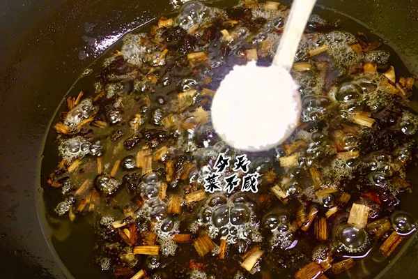 四、炸好的醬要放入味精、雞精和白糖提鮮,不需要放鹽,通常幹黃醬都比較咸。