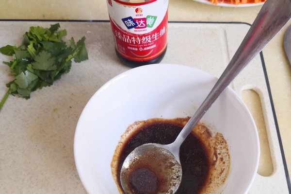 4.將生抽、鹽和胡椒粉放到一隻幹凈的碗裡,攪拌均勻,